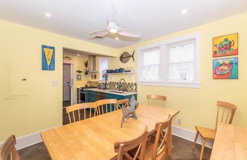 Welcome to this cozy 3-bedroom, 2-bath cottage on scenic Jackson Street, perfect for families or small groups looking to enjoy Cape May's charm. The property offers a spacious living room with colorful decor, a fully equipped kitchen with modern appliances, and a bright dining area perfect for gathering together.