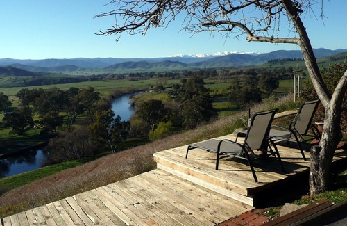 THE MAIN VIEW over the Murray River and onto the Snowy Mountains from the shared viewing deck is a favourite communal spot for all to enjoy.
