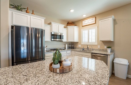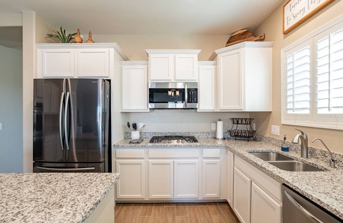 Our 4 bedroom 2 bath home boasts spacious living quarters, a modern kitchen with stainless steel appliances, moderate size bedrooms, and a game room to enjoy a round of pool or a night under the stars in Hot tub! Heated pool optional*