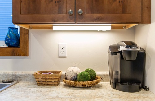 The living room has a 44 inch flat screen television and a blue ray DVD player with an antenna for local stations or streaming TV thru Roku using your account log-in. There are games and jigsaw puzzles provided.