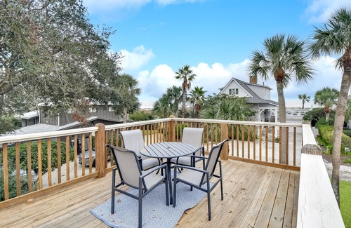 This is the place to be! The ultimate, affordable, cozy beach cottage! Enjoy the true St. Simons flavor of a beach cottage with amenities and gorgeous views of the ocean. Just steps to the beach. Features a fully equipped kitchen, king size bedroom, loft with a double and twin beds, pull out queen sleeper sofa in the living room, 1 full bath downstairs, a half bath in the loft, and an outdoor shower. Living areas include dining area/living room with fire place, large screened porch and patio with grill. From the outside elevated observation deck, have your coffee and watch the sunrise or in the evenings, watch the moon rise over the ocean. Pets considered with a $250 nonrefundable pet fee.