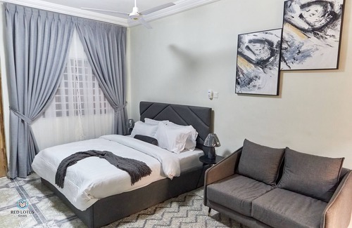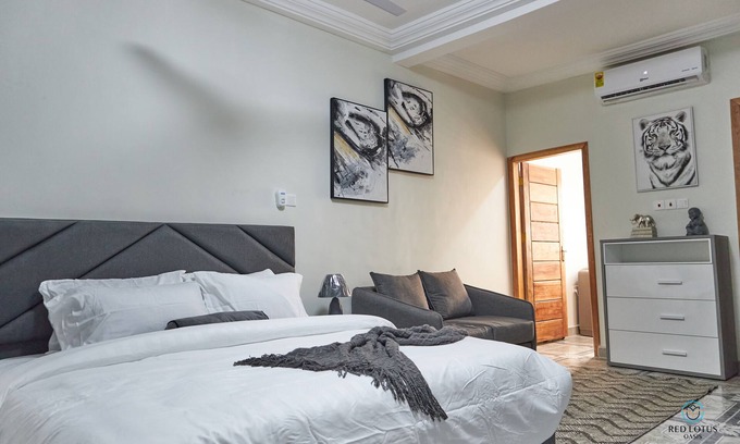 Welcome to your cozy vacation home in Ghana! This newly renovated Executive studio apartment at Red Lotus Oasis is fully equipped with modern amenities to ensure your long or short stay is comfortable and enjoyable. Conveniently located in the heart of Accra, the cozy ambiance of this tastefully furnished apartment is the best choice for guests searching for a combination of charm, peace, privacy, comfort and serenity. Book your stay and experience true comfort and convenience.