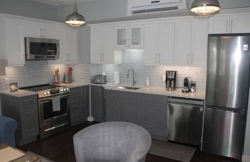A living room, a fireplace, and air conditioning are featured at this 1-bedroom, 1-bathroom rental. Enjoy the free WiFi, cable/satellite TV, and DVD player. Bathroom amenities include a hair dryer, towels, and toilet paper. The kitchen is equipped with an oven, a stovetop, and a refrigerator, as well as a coffee maker, an electric kettle, and a microwave. And you won't have to pack extra clothes, because you'll have a washer and dryer, too. Other amenities include bed sheets, an ironing board, heating, and a dining table.