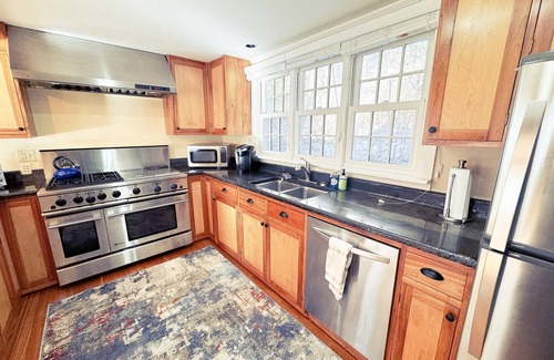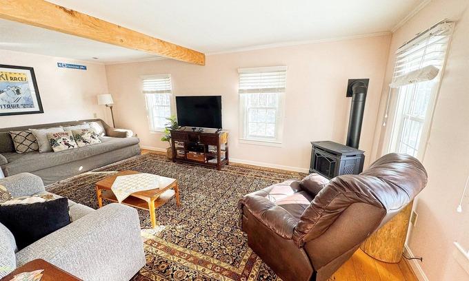 Discover our cozy 2-bed, 1-bath retreat in historic Moscow, near Stowe, Vermont! Step into a warm, tastefully decorated space blending modern comforts and rustic charm. Embrace the tranquility, but note limited cell service in this rural haven. Welcome to your serene getaway!