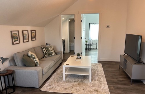 Cozy farmhouse loft located in the quaint Village of Spring Lake with lake access. Lake views from kitchen window. One bedroom, one bathroom with living room and full kitchen on second floor. Separate, private entrance. One queen bed in bedroom as well as 2 twin blow up air mattresses for children. Board games, card games and toys. Discovery + on 50” smart TV and free wifi. Paddle boards available for use on Spring Lake as well as bicycles to bike around the Spring Lake roads and trails. Lots of walking trails as well as pickle ball court, basketball court in the summer and skating rink in the winter at the Spring Lake Village office. Four playgrounds around the lake. Ice cream/candy store within biking distance during the summer months. Local attractions such as distillery, yoga studio and golf course. All amenities with 12 minute drive.