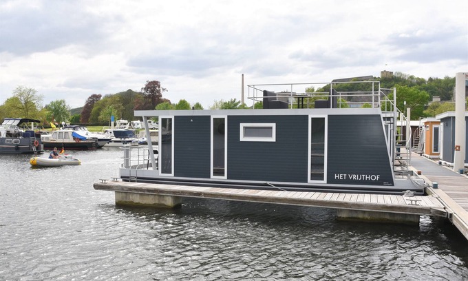 The "Het Vrijthof" is a new Boatlodge (delivery December 2018), a "tiny floating house" located in a beautiful, natural environment and fully equipped for a stay of up to 4 people. Ideal for 2 adults and 2 children. Surrounded by water, many boats and the city of Maastricht just 3.5 km away, this is a fantastic place for a short or long vacation in South Limburg. An oasis of peace for sleeping, yet only 10 "bicycles" minutes away from the bustling center in Maastricht.