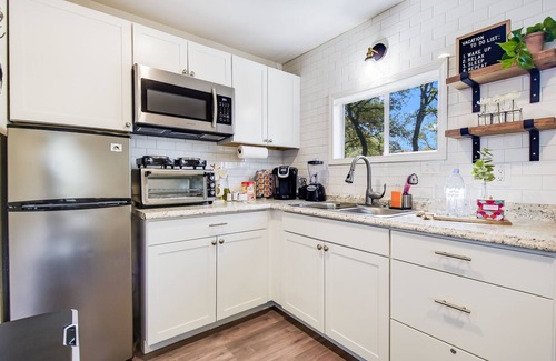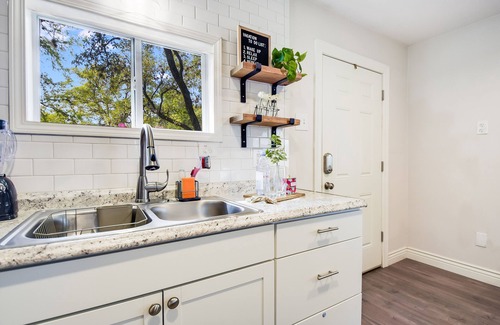 Our Guesthouse is located on our back patio detached from our home. You can choose to do a self-check-in with the VRBO check-in instructions or we can be there to get you all checked in. We are always available for questions if they arise.