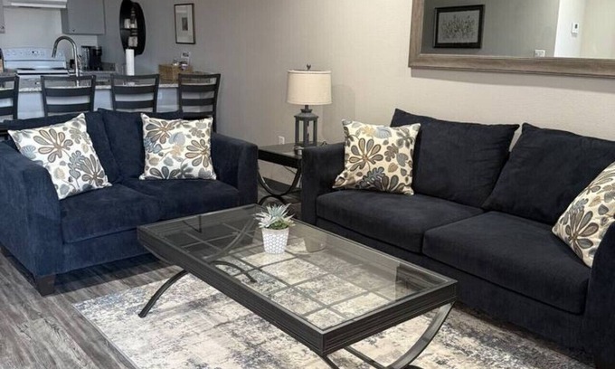 Welcome to our charming 2 bedroom, 2 bathroom fully furnished apartment with in-unit washer/dryer and the kitchen is fully stocked with all the necessary appliances and kitchenware for you to whip up a delicious meal. This inviting apartment features 2 comfortable bedrooms, each with a cozy queen-sized bed and ample storage space. The tastefully decorated living area boasts comfortable seating and a flat-screen TV for relaxation after a busy day. Our unit is located only minutes away from several restaurants and shopping centers. We are also only a few miles from Plains Regional Medical Center and Cannon Air Force Base.