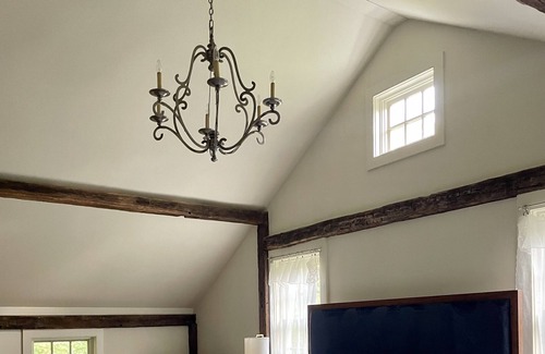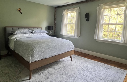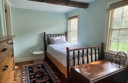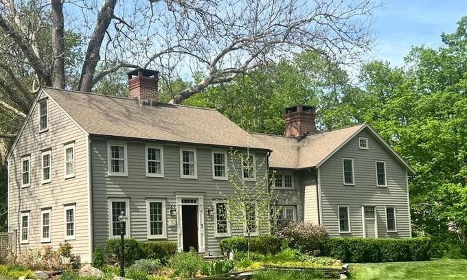 Step back in time while you relax with the whole family at this peaceful Revolutionary War-era estate in the Connecticut countryside. With original flooring, beams, and windows from the 1700s, this timeless colonial sits on 3 acres of beautifully manicured gardens with a pool, sauna, greenhouse, firepit, patio, trampoline, and an 18th-century barn. Inside you will luxuriate with a modern kitchen and multiple fireplaces.