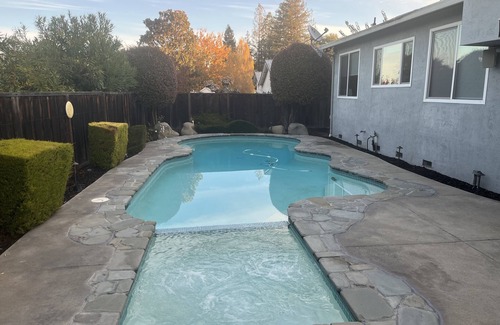 Close to everything at this centrally located place. Super close to prestigious downtown Pleasanton, County Fairgrounds, shopping, freeways. Quiet cul-de-sac. Cozy rear yard with non-heated pool and heated spa. Very clean, relaxing home. No parties or events allowed. No smoking (cigarettes, cigars, pot, et al) on any part of property, including back and front yards.