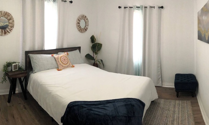 Welcome to your home away from home! This cozy 2-bedroom, 1-bathroom retreat is designed for comfort and tranquility, whether you stay a few days or weeks. Enjoy a fully equipped kitchen with a stove/oven, microwave, and fridge with filtered water and ice. Start your mornings with a fresh brew from the Keurig. We provide all the essentials to make your stay easy and enjoyable. Come relax and unwind!