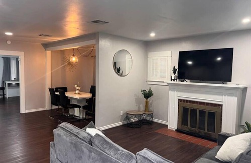 Conveniently located near the airport. You’ll enjoy Full kitchen, private backyard, WiFi free parking, one bedroom offers a cozy full size bed, second room offers a comfortable queen bed, and 3rd room offers a twin trundle bed, living room has a sofa bed,