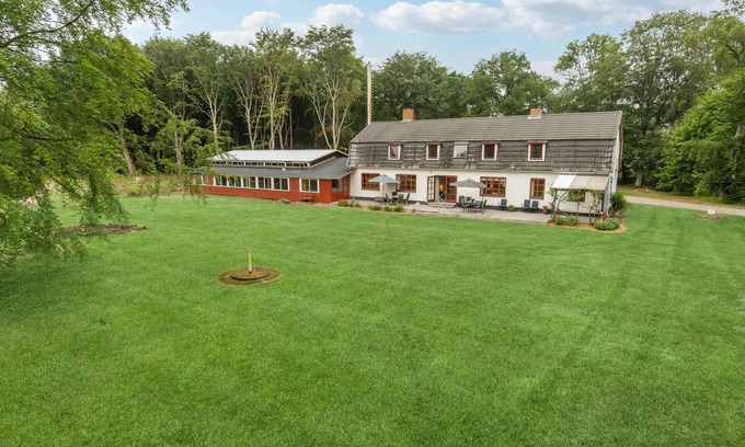 Enjoy the large garden, which also has a lake, while sunbathing or having a cup of coffee on the terrace, watch the children play on the trampoline and round off the day with a delicious meal from the barbecue.