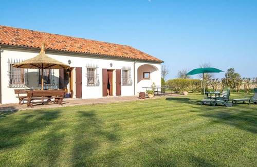 Holiday home surrounded by greenery and only 2 km from the sea, ideal for those who love the sea but want to live far from the confusion of the classic tourist attractions. The property is located in a strategic position for visiting the region: Chioggia (7 km), from where you can reach Venice by boat and the other beautiful cities of art ( Padua, Vicenza, Treviso, Ferrara, Ravenna). In the evening you can enjoy relaxing moments in the garden. At your disposal a garden for relaxing and sunbathing, football pitch, volleyball net, table tennis, table football. Cycle routes in the lagoon area start from the house; from Sottomarina you can cycle and walk around the Lusenzo lagoon. From Chioggia, you can reach Piazza Vigo and take the vaporetto to the island of Pellestrina, which is well worth a visit. Not to be missed are the historic cities of art in the region: Venice and the islands of the lagoon; Padua (40 km) with the Basilica del Santo and the botanical gardens (UNESCO World Heritage Site); Vicenza (80 km) with its Palladian architecture; Treviso (70 km) with its canals and frescoed buildings; the Renaissance city of Ferrara (80 km), Ravenna (90 km) with its Byzantine mosaics and a series of medieval towns: Comacchio, Monselice, Este. There are over 4000 historic villas in Veneto. Many of them have beautiful gardens where you can spend a pleasant day. This house is not only an excellent solution in summer, thanks to the beaches, the excursions in the lagoon and a boat trip along the Po Delta, but also in other seasons to explore the art-rich surroundings.