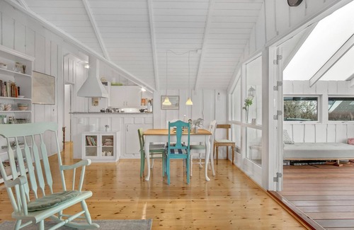 Welcome to this beautiful and lovingly furnished vacation home in Røsnæs Strand. Together with your loved ones you can make yourself comfortable here and use the bright rooms for your pursuits such as tasting, playing and relaxing in a pleasant atmosphere. In the evening, fire the fireplace, watch your favorite movie or play cards in the space between you and the terrace. Here you can also open the large window font and step onto the open terrace. Another sheltered terrace invites you to barbecue together and plan your activities and excursions for the upcoming vacation days.