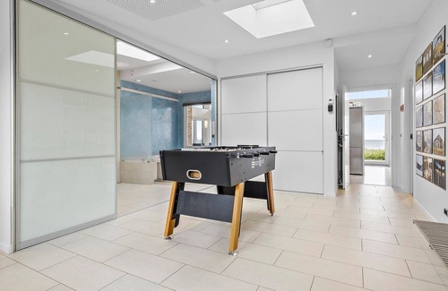 This beautiful holiday home welcomes you with a magnificent sea panorama and high quality. Privacy is a top priority here, so every bedroom in the house has its own private bathroom. At the heart of the house is a wellness area with a large whirlpool and sauna for relaxation inside the house with panoramic windows, promising hours of relaxation.