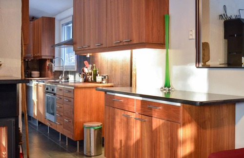 This former farmhouse awaits its guests surrounded by the oak forest in a quiet environment. Up to 10 people can be accommodated here. The interior is modern and cozy and completely designed for you to spend quality time together. After a wonderfully long day of vacation with plenty of time outdoors, get comfortable all together by the fireplace or stove and prepare delicious vacation meals in the well-equipped kitchen. Fish can be cleaned in the house.
