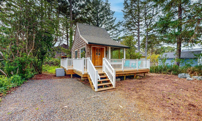 Escape to the iconic Oregon coast at Windsurfer's Escape, a charming cedar A-frame cabin just steps away from the shore in Manzanita. This beautifully remodeled beach cabin seamlessly blends classic coastal charm with modern amenities, offering a cozy retreat for your seaside getaway.