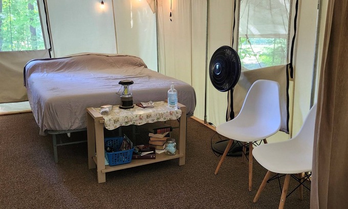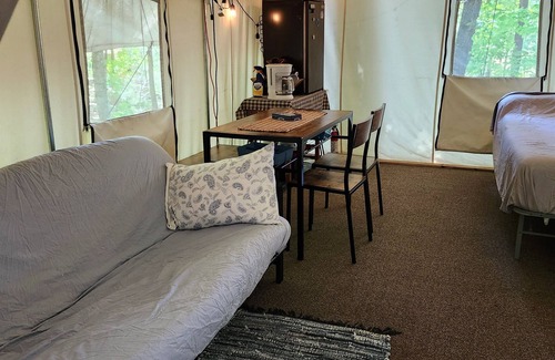 Exploration of our woods is really encouraged with our 3 miles of trails. We are situated very close to local, state trails, waterfalls and forests. We are in between Nashville and Gatlinburg TN, up on the Cumberland plateau. Your parking space will be about 70ft from the tent but an easy walk. Our workshop/home is approx 100 feet away, if you should need anything.