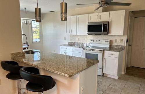 Beautiful location , quiet place and good neighbored , 15 min to the Golf of Mexico . Sandy white beaches , 30 min to healing lake Warm Mineral Springs , new aqua park , Golf Court 2 min , park , Play ground near property , Canal view , fishing , many songbirds , very clean house , fresh paint , new furniture , new plumbing . many restaurants nearby , there're pedestrians , bicycle paths , street lit