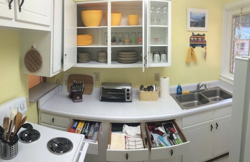 -Fully stocked kitchen with appliances/utensils (no dishwasher) -Fast WiFi -Four bikes for renters to use -Three off street parking spots