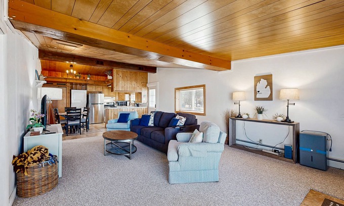 Inside, you'll find a cozy and inviting atmosphere designed for family comfort. The single-level layout ensures easy accessibility, featuring a queen bed, double bed, and a sofa bed to accommodate everyone. Enjoy modern amenities such as a fully equipped kitchen with a dishwasher, microwave, and coffee maker, along with entertainment options like cable TV, Netflix streaming, and a DVD player for family movie nights.