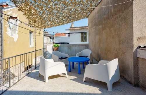 The house is a 100 year old gem in a tiny street ending at the sea, recently renovated in the traditional spirit. It is located in the old center of the village of Murter, 40 meters from the sea. The house is located in the old center of the village of Murter in the beautiful island of Murter. It has two floors and two terraces. In the ground floor there is a courtyard-type terrace, the kitchen, the living room and the bathroom. The stairs lead from the bottom terrace to the top terrace, which has a view of the sea. From the top terrace one enters the top floor which has two bedrooms and a toilet. One bedroom has a double bed, and the other one has two single beds. In the downstairs living room there is also a pull out sofa which can be used as a bed for two additional guests. Although the renovations have tried to keep the traditional feel of the house, it has all the modern amenities. The kitchen has all the cooking utensils you could need, a fridge, an oven, a microwave and a dishwasher. The bathroom is rather spatious with a bathtub and a washing machine. The house also has air-conditioning, a large LCD TV with cable TV, and a free Wi-Fi connection. The location of the house is wonderful for a relaxing holiday in one of the most beatiful regions of the Croatian seaside. The village itself is nice, you are just a stroll away from all the restaurants, bars, stores, bakeries and the market filled with local produce. The pebbled beach is 400 m away, which is a great option for families with smaller children. The island has several exceptional beaches which are famous for their beauty, and they are all within the driving distance of 5 to 10 minutes. You can also rent a boat or an excursion to the nearby Kornati national park, which is an archipelago of 170 mostly uninhabited small islands, surrounded by the clearest, bluest sea you can imagine! Concerning your arrival to the village, Murter is an island, but it is connected to the landmass with a bridge which is toll-free, so there are no traffic problems and jams which usually occur with ferries. The important thing to know is that during the summer every day between 9 and 9:30 and between 17:00 and 17:30 the bridge opens to let the larger boats pass through, so the car traffic is closed during these periods. The closest airport is in Zadar, 68 km away. As our house is located in the historic part of the village, it has no parking directly in front of it, but there is a big public parking located 200 m away, a 2 minute walk. You will receive a parking card issued to your car registration number free of charge. Points of interest Murter is the largest settlement on the island of the same name, which has the greatest number of islands in its archipelago (over 170), with a large number of sandy beaches along its coastline (Čigrađa, Slanica, Podvrške...), as well as numerous interesting destinations in its vicinity (the national parks: Kornati, Paklenica, and Krka; the nature parks of Telašćica and Vransko Lake; the cities of Zadar, Šibenik, and Split). Specialized restaurants and inns offer a wealth of gastronomic specialities. The remains of Roman buildings, as well as the remains of the antic settlement Colentum, can be found at the foot of the Gradine elevation, in the Hramina cove and elsewhere.