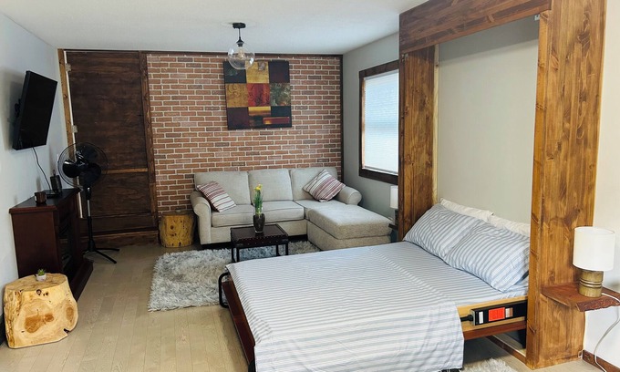 private place with its own entrance in our centrally located family home. You'll be steps from everything, with a bus stop right next door. Please note that occasional noise is possible in a home setting."