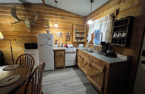 Experience beautiful Palmer, Alaska in this cozy 2-bedroom log cabin. This cabin features 1 queen bed, 1 full bed, a living room with a futon, kitchen, dining area and a full bathroom. Enjoy the convenience of a washer and dryer, WiFi, and more during your stay. This property is peaceful and private. It is close to Hiking trails, Hatcher Pass, The Musk Ox farm, and the Reindeer Farm. We are located 15 minutes from downtown Palmer.