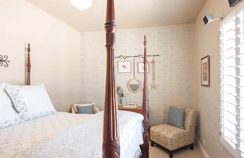 One bedroom, one bathroom private suite with a separate entrance. Large bathroom with everything you’ll need. Walk in area has a mini fridge and microwave. Equipped with 36 inch TV w/ Firestick . Courtyard has a table and patio furniture which you are free to use!