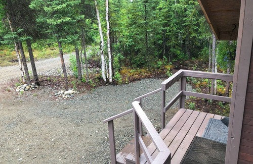 Secluded one bedroom Cabin in the forest with full bathroom/ shower/vanity/ toilet. Bedroom has full size bed with wall mounted TV. WiFi near. Bath has 36' walk in shower. Kitchen with microwave, small fridge, two seat table, coffeemaker, and sink. Electric baseboard heat.Has small front deck and an adjacent fire pit. Cabin is short walking distance to Little Susitna river for Trout and Dolly Varden fishing. Approx. 68 miles from Anchorage. 17 miles north of Wasilla. 5 miles from Big Lake. Just 1/2 mile off the Parks Highway in Houston Alaska. My Cousin and her husband from Louisiana were the first people to stay in the cabin. Hadn't seen them for 20 some years. She left this note - It has been a joy to know you both these last few days. we can't thank-you enough for your hospitality and sharing Alaska with us in this cute little cabin! Bless you both!
