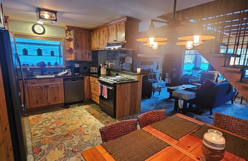 Step into a cozy and inviting space with a unique railroad-inspired design, blending rustic charm with modern comforts. Whether you're warming up after a day on the slopes or enjoying a peaceful summer evening in the mountains, this cabin has everything you need.