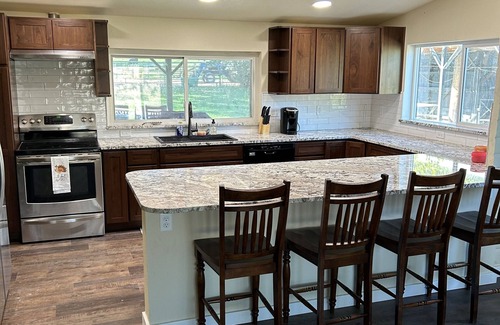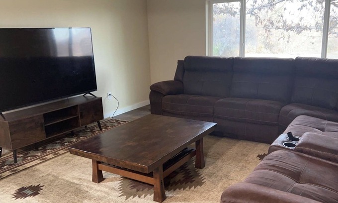 Brand new remodeled house! Our cozy cowboy farmhouse is the perfect get away. A living room with electric couches, Wi-Fi, and 70 inch flat screen tv is the perfect way to relax. Our Incredible spacious kitchen features granite counter tops, microwave, oven, fridge and a keurig. We offer a full bathroom with amenities such as towels wash cloths shampoo conditioner body soap and a hair dryer. The house has three cozy comfortable beds 2 queens and one full for the perfect nights sleep!