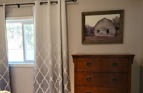 The carriage house is private so that you feel separate from the main house. It is located in a quiet neighbourhood on the side of Eagle Ridge Mountain. You will be six kilometers from downtown Grand Forks, a short drive with lots of shopping. There is an upper balcony for comfort and a lower patio with a BBQ for entertaining. We are pet-friendly and there is lots of opportunity to share a walk with your pet. You will find in the fully equipped kitchen a coffee maker and coffee pods, as well as some hot chocolate and tea. There are also some flavoured creamers and regular cream in the fridge. I provide a few condiments such as ketchup, mustard, mayonnaise, Pam Spray and a few spices. Pack your bags and pick up a few groceries and come to relax.