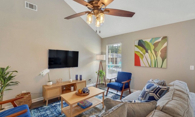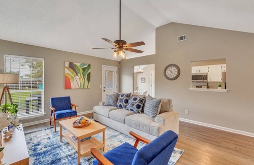 Escape to Cozy Retreat Near Savannah, a getaway in Richmond Hill, just a short drive from historic Savannah. This charming 4 bedroom, 2-bathroom home offers a perfect mix of Southern charm and modern amenities—including solar panels for a sustainable stay. Relax in a spacious living area, prepare meals in a fully equipped kitchen, and enjoy the private, fenced backyard with a grill and outdoor seating. With easy access to Fort McAllister State Park, Savannah's Historic District, and Tybee Island beaches, this is the ideal spot for your Georgia getaway!