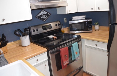 The kitchen is fully stocked with a Keurig Duo coffee maker, plus everything you need to cook meals at home. If you feel like going out instead of cooking, there are several excellent restaurants located nearby. Local favorites include Medley, Aceq and Sambroso. All are within 10 minutes by car and have delicious food and an upscale atmosphere.
