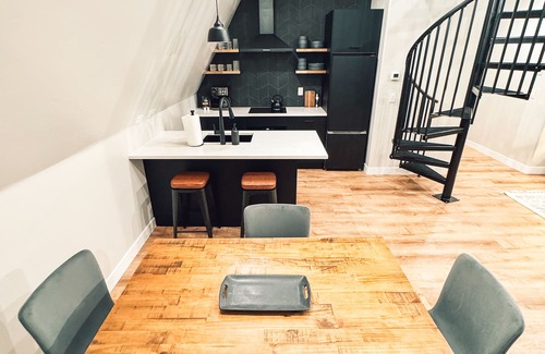 With a fully stocked kitchen, WiFi, and SmartTVs located in each bedroom, you are able to experience all the conveniences of the modern world while enjoying the peace and quiet of this space. Head outside to a comfortable outdoor seating area, fire pit and a hot tub located on our expansive south facing deck. No matter the season you will be wowed by the views witnessed from floor to ceiling windows in this open living space.