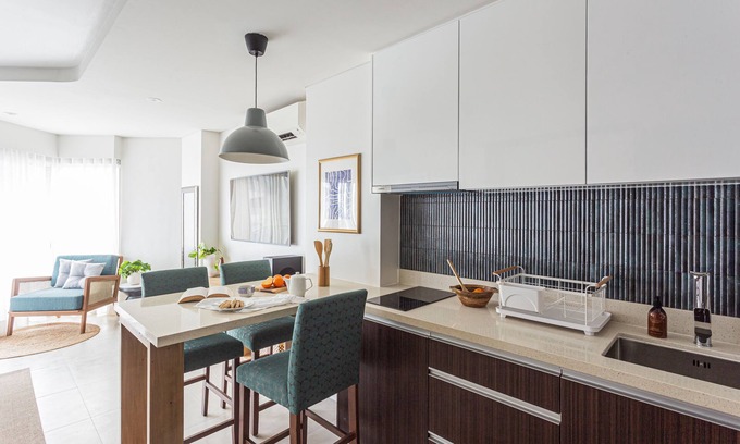 Resort-Style Amenities at Your Doorstep: As our guest, you're invited to enjoy the resort's luxurious amenities. Take a refreshing dip in the swimming pool, lounge on the sun-kissed beach, or indulge in various water sports. The resort's amenities are designed to provide an unforgettable experience. Please note that for stays 31 nights and more, our guests (up to two adults) will be accorded complimentary resort access. For stays less than 31 nights, you may avail of the resort access at a discounted price at check in.