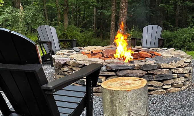 In the backyard, you can gaze upon the constellations while seated around the locally sourced Sourland Mountain stone firepit in any season. Firewood is provided. The property is also connected to the Hopewell Sourland hiking trail which you can take to town.