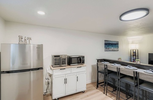 Your guest retreat is a fully finished basement suite, thoughtfully designed for comfort and privacy. The modern kitchenette features a refrigerator, microwave, coffee maker, and all the essentials you need to prepare a quick breakfast or a cozy evening snack. Unwind in the inviting living area, where a plush sofa and soft lighting create the perfect atmosphere for movie nights, reading, or playing board games. Two cozy bedrooms ensure restful nights, while the contemporary bathroom boasts premium fixtures for a touch of luxury during your stay.