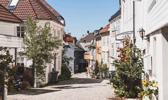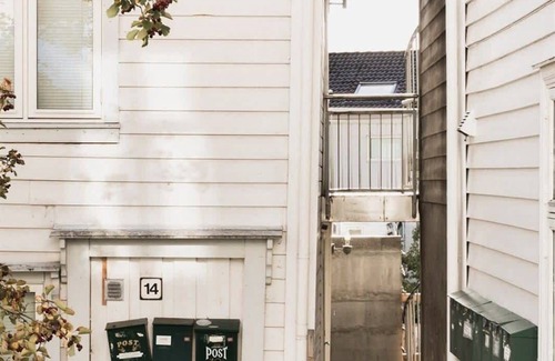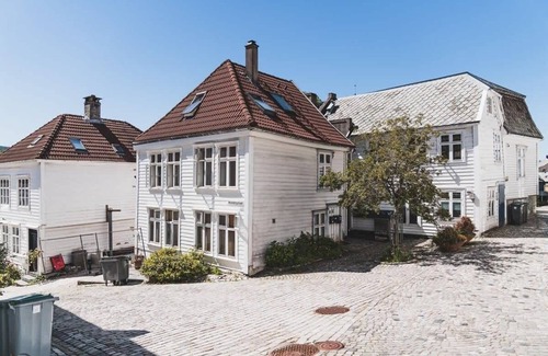 Right behind Bryggen, you'll find self-check-in access to the top floor of this classic Bergen house. The charming cobblestone street is sheltered from cars and noise, providing a peaceful environment in the heart of Bergen.