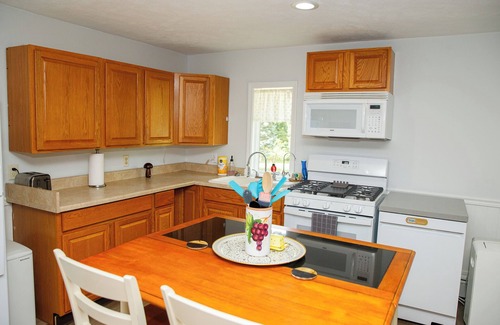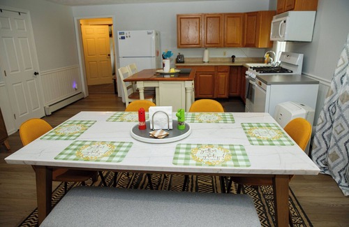 A charming house on 10 acres in North East is a nice retreat for guests looking to unwind and explore the region any time of year. You will stay in a newly renovated, in-law unit (1200 sq. ft) with a private-entrance on the left of the shared driveway. It features a spacious and well-equipped kitchen and dining area (all new appliances, service for 6, cooking utensils, Keurig & coffee maker). The bedroom includes an adjustable, king-sized bed, blackout curtains, large closet, and plenty of dresser space for your things. The bathroom has a double-sized standup shower with handheld wand or stationary rainfall head and sitting bench, bidet, plenty of towels and linens, and laundry machines. The separate living room is set up for entertainment with smart TV, DVD player, stocked game shelf, and reading nook. It also, converts to a second bedroom with a queen-sized Murphy bed. Need to do some work? Use the desk and plug your laptop into the free sync monitor and HP printer.