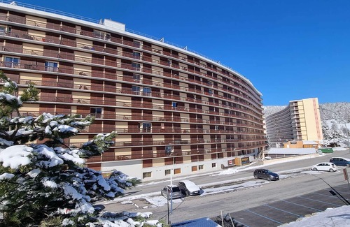Southwest-facing studio apartment with a sleeping area and terrace, located on the 7th floor of the "Le Bois d'Aurouze" residence with elevator.