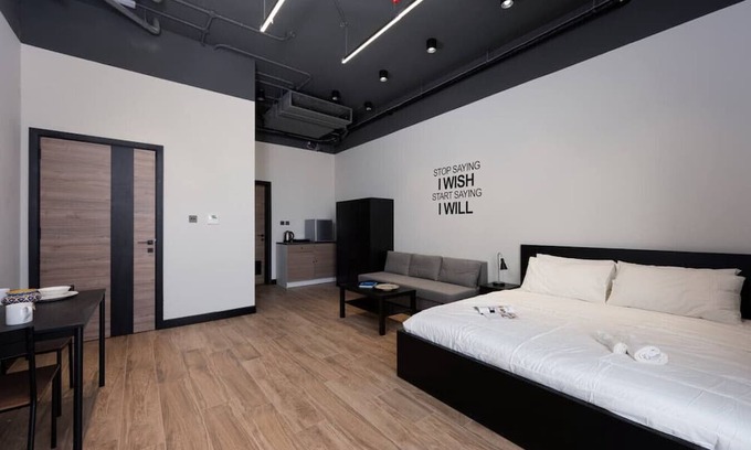 Modern studios designed with comfort and style in mind, offering you a peaceful stay away from the hustle and bustle of the city. The neighborhood is calm and surrounded by offices and workspaces, making it an excellent choice for guests who need a quiet place to stay with the convenience of working outside the home when needed.