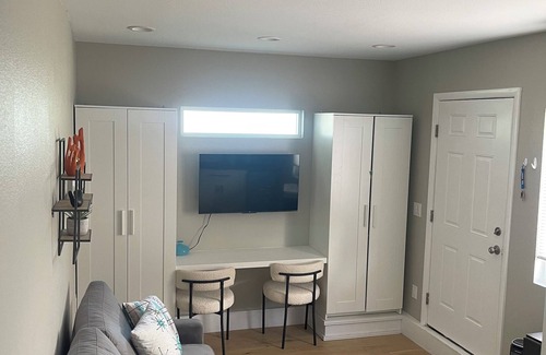 Make yourself at home in this delightful studio with pool and patio access and free off-street parking. This cozy space features a soothing sofa bed, a bathroom with a rain shower, and convenient amenities like WiFi and AC. All new mid-century modern decor. Fully furnished and equipped.