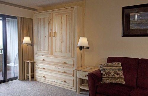 Edelweiss 207 is a nicely decorated studio unit with murphy bed and patio.