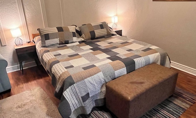 This Boise studio boasts 1 inviting bedroom with a king bed and a sofa bed. The space is equipped with AC, WiFi, and heating for a comfortable stay. The bathroom includes a shower and a hair dryer for your convenience. Book now and enjoy everything this charming property has to offer.