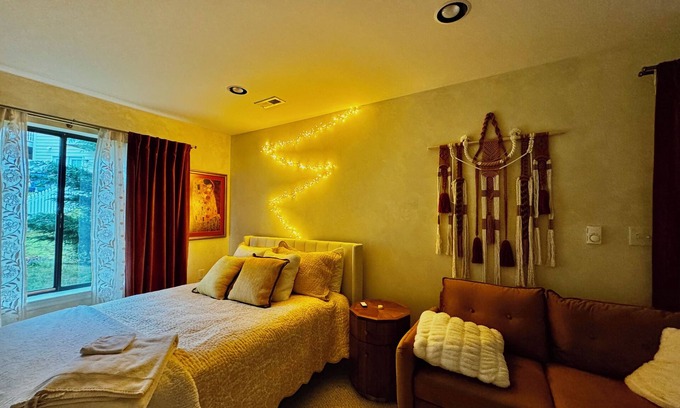 This space is ideal for traveling professionals, creatives, remote workers, or anyone looking for a comfortable and energetically clear place to land. With its peaceful setting and immediate connection to nature, this little studio offers something rare — a calming, beautiful, and sacred space to simply be.