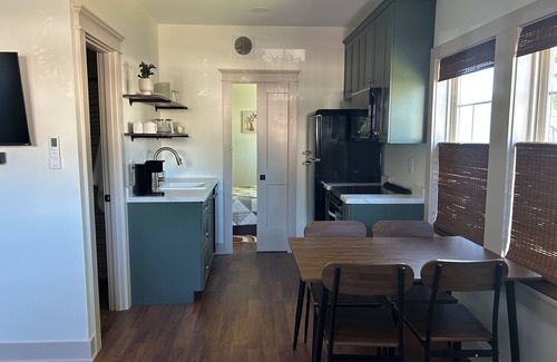 This Scottsburg house boasts a full kitchen! 1 inviting bedroom with a cozy queen bed. The living room offers a nice sofa bed for extra guests. This cozy tiny house offers comfort, style, and convenience - just two blocks from the historic town square with local shops, cafes, and restaurants. We look forward to welcoming you to our place.