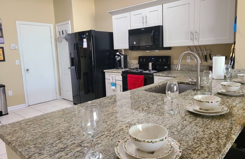 The entire townhome is yours to enjoy. You have so many restaurants around you to choose from since you are right by the Tampa Premium Outlets. Quick access to the freeway and a quick drive to the crystal lagoons. This townhouse has three bedrooms two and a half bathrooms, a full-size kitchen with all the pots, pans, dishes and utensils you need to cook and feed a family of six. You also have a one car garage and driveway.
